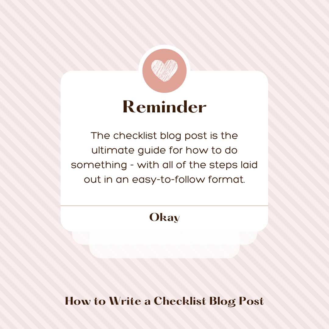 The checklist blog post is the ultimate guide for how to do something - with all of the steps laid out in an easy-to-follow format.